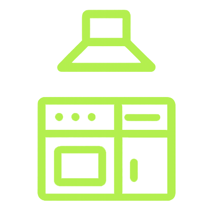 - une cuisine équipée : frigidaire, plaques de cuisson et four, micro-ondes, rice cooker, cafetière à filtre, grille pain, bouilloire, ustensiles de cuisine.